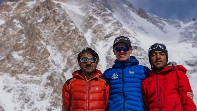 نرمل پرجا کے ہمراہ 16 جولائی کی راتایک بجے کیمپ تھری سے سمٹ پوش کا آغاز کیا اور دوپہر ایک بجے انتہائی بلندی تک پہنچنے کا ممکنہ ٹائم تھا لیکن ٹیم نے شام 5بجے کے ٹو سر کیا اور صرف10 منٹ تک انتہائی بلندی پر رہنے کے بعد واپسی کا سفر شروع کیا ، اسی رات ایک بجے بہ حفاظت کیمپ تھری پہنچ گئے اوراسی روز ایک اسپینش کوہ پیما ،کیمپ ون سے واپسی پر برفانی شگاف میں گر کر جاں بحق ہوگیا۔ نیپالی کوہ پیمائوں کی کامیابی کے بعد علی سدپارہ اور ٹیم نے 25جنوری کو بھی ایک کوشش کی لیکن موسم کی خرابی کے باعث انھیں کیمپ تھری سے واپس آنا پڑا، موسمیاتی اداروں کی جانب سے 4 اور 5 فروری کو موسم صاف ہونے کی پیشگوئی کی تو علی سدپارہ اور ٹیم کے ہمراہ 30 کوہ پیمائوں نے 2فروری کو بیس کیمپ سے اپنی مہم جوئی کا آغاز کیا۔